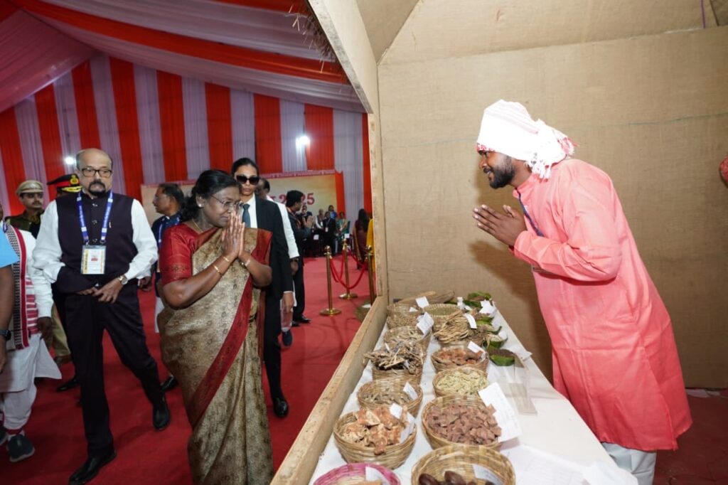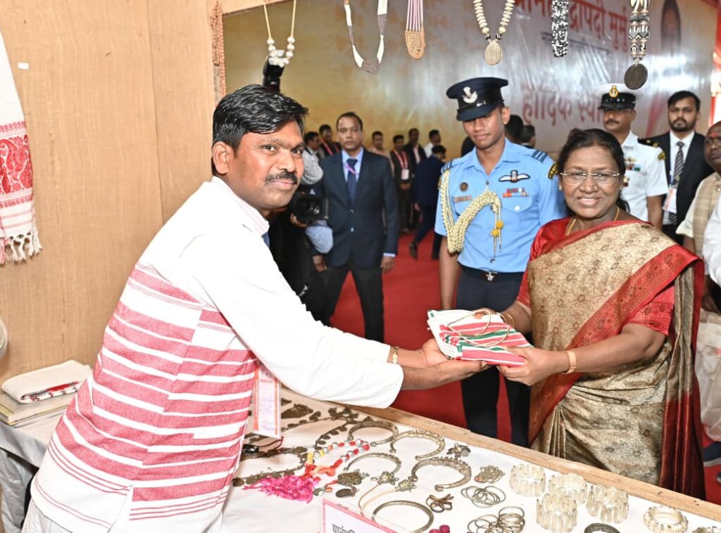 जनजातियों द्वारा विभिन्न लोकपर्वों एवं आयोजनों में पहने जाने वाले आभूषणों की लगी प्रदर्शनी, कलिंदर राम ने राष्ट्रपति को पैरी और गमछा किया भेंट