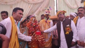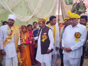 कृषि मंत्री राम विचार नेताम ने वर-वधु को दी बधाई