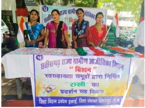 कलेक्टरेट परिसर में स्टॉल लगा रही स्व सहायता समूह की दीदियों ने बताया कि उनके समूह द्वारा धान से बनी राखी और तिरंगा ध्वज का स्टॉल के जरिए बिक्री की जा रही है, जिसके प्रति लोगों का अच्छा रुझान देखने को मिल रहा है और कलेक्टरेट आने वाले लोग धान से बनी राखी काफी पसंद कर रहे हैं और तिरंगा ध्वज खरीदने बड़ी संख्या में लोग पंहुचे। उन्होंने बताया कि अब तक 500 के लगभग राखियां बनाई गई हैं, जिनमें 100 से अधिक बेची जा चुकी है।आज कलेक्ट्रेट परिसर में लगाए स्टॉल से उनका अच्छा कारोबार हुआ और उन्होंने 1500 तिरंगा बेचकर लगभग 28000 का कारोबार किया साथ ही राखी बेचकर भी अच्छी कमाई हुई।