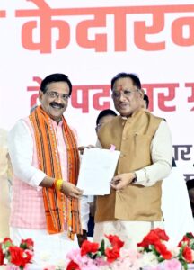 रायपुर। मुख्यमंत्री विष्णु देव साय आज राजधानी रायपुर के बलबीर सिंह जुनेजा इंडोर स्टेडियम में छत्तीसगढ़ राज्य सहकारी बैंक मर्यादित के नवनियुक्त प्राधिकृत अधिकारी केदारनाथ गुप्ता के पदभार ग्रहण एवं अभिनंदन समारोह में शामिल हुए और उन्हें शुभकामनाएं दीं। इस अवसर पर मुख्यमंत्री ने जशपुर जिले के फरसाबहार में अपेक्स बैंक की नई शाखा का वर्चुअल शुभारंभ किया और क्षेत्रवासियों को बधाई दी।