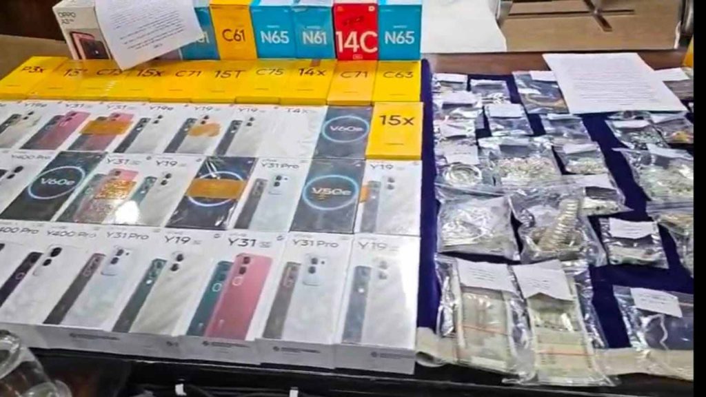 पुलिस ने आरोपियों के कब्जे से 96 चोरी किए गए मोबाइल फोन बरामद किए हैं, जिनकी बाजार कीमत करीब ₹12 लाख 10 हजार 400 रुपये बताई जा रही है। इसके अलावा 8 लाख रुपये के सोने-चांदी के जेवर, चोरी के पैसों से खरीदी गई ब्रेजा कार और एक मोटरसाइकिल भी जब्त की गई है।