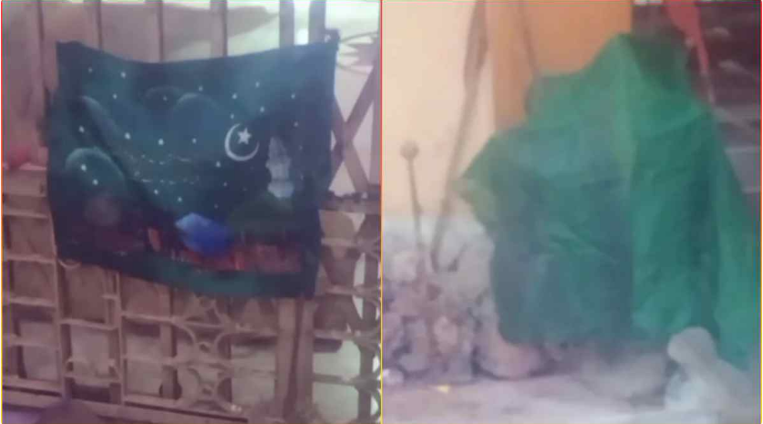 जानकारी के अनुसार घटना सोनपुर गांव की है। बताया जा रहा है कि कुछ असामाजिक तत्वों ने मंदिर के गेट पर हरे रंग का झंडानुमा कपड़ा लगा दिया और माता के त्रिशूल के पास भी हरा कपड़ा रख दिया। सुबह जब ग्रामीणों की नजर इस पर पड़ी तो मामले की जानकारी पूरे गांव में फैल गई और बड़ी संख्या में लोग मंदिर परिसर में एकत्रित हो गए।