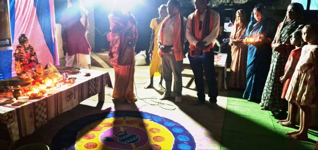 कार्यक्रम का शुभारंभ पारंपरिक रीति-रिवाजों के साथ हुआ। ग्राम पुजारी जय गिरी द्वारा गो पूजन एवं आरती की गई। गोमाता के समक्ष दीप प्रज्वलन, भजन-कीर्तन एवं गोआराधना के साथ पूरे वातावरण में भक्ति और समर्पण की भावना व्याप्त रही। ग्रामीणों ने गाय की परिक्रमा कर गोमाता की सेवा और संरक्षण का संकल्प लिया।