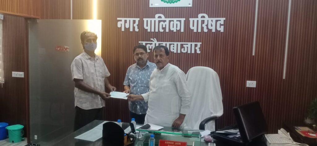 *********नगर पालिका अध्यक्ष अशोक जैन द्वारा राशि का वितरण किया गया, जताया आभार********* बलौदा बाजार ।नगर पालिका क्षेत्र अंतर्गत नगर में निवासरत जरूरतमंद लाचार व छोटी बीमारी के इलाज में आर्थिक सहयोग प्रदान किए जाने के लिए कैबिनेट मंत्री व विधायक टैटंकराम वर्मा के द्वारा स्वेच्छानुदान मद से 24 हितग्राहियों को राशि 205000/- प्रदान की गई, नगर पालिका अध्यक्ष अशोक जैन के द्वारा विभिन्न वार्डों से पार्षदों के मांग पर हितग्रहियों को स्वेच्छा अनुदान राशि का वितरण किया गया।