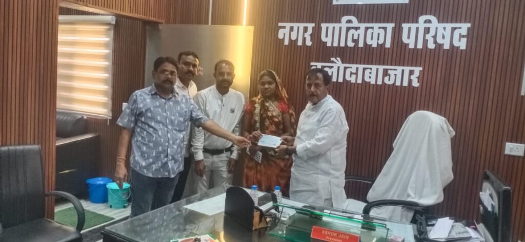 स्वेच्छा अनुदान राशि हेतु वार्ड क्रमांक 01- टिकेश्वरी वर्मा को 5000 खिकबाई/ कलाराम बंजारे वार्ड क्रमांक 11को 10,000 ,द्रोपती निर्मलकर को 10000 /- नंदलाल चिमनानी को केंसर के ईलाज में सहयोग स्वरूप 15000/- श्रीमती निशा 10000/- चंद्रमणि साहू 10000/-सुदर्शन वर्मा, वार्ड क्रमांक 21को 5000/- संतोष कुमार पाटले 5000/- सीमा बंजारे वार्ड क्रमांक 4 को 5000/- पिंकी यादव निवासी वार्ड क्रमांक 4 को 10000/- कृति सिन्हा को 5000/- काजल कोरी निवासी वार्ड क्रमांक 3 को 5000/- कालीबाई जोशी , वार्ड क्रमांक 3 को 5000/- सागर कुमार को 10000/- शंकर लाल टंडन पुरानी बस्ती को 10000/- जयवंतीन बाई साहू , क्रमांक 20 को 5000/- गंगाबाई यादव 5000/- ललित ध्रुव, पुरानी बस्ती 10000/- बलाराम टंडन, 10000/- वार्ड 9 की श्याम भाई जायसवाल को 10000/- कमलेश ढीमर वार्ड 09 को 10000/- केजा बाई यादव 5000/- पुरुषोत्तम ध्रुव को 10000/- कुल राशि 2,05,000/- दो लाख पाँचहजार के चेक का वितरण किया गया। इस राशि वितरण के अवसर पर सभापति कन्हैया सेन, सुरेश घृतलहरे, गौतम चौहान, पार्षद प्रतिनिधि शशि भूषण शुक्ला, सुभाष राव, मनीष वर्मा, रवि फेकर सहित हितग्राही गण उपस्थित थे।