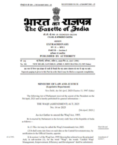 नई दिल्ली: राष्ट्रपति द्रौपदी मुर्मु ने वक्फ संशोधन विधेयक 2025 को मंजूरी दे दी है.  जिसके साथ ही यह विधेयक अब एक अधिनियम बन गया है.