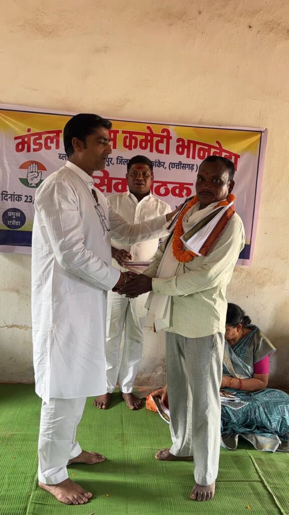मतदाता सूची का भौतिक सत्यापन करने हेतु सभी कार्यकर्ताओं बूथ अध्यक्ष दिया गया। किसी मतदाता नाम नहीं छूटना चाहिए। तथा 18 वर्ष पूर्ण किए मतदाताओं को नाम जोड़ने के लिए कहा गया। संगठनात्मक सृजन के तहत नई सिरे से पोलिंग बूथ कार्यकारिणी गठन सभी वरिष्ठ कांग्रेस कार्यकर्ताओं, मंडल अध्यक्ष सेक्टरअध्यक्ष साथ मिलकर गठन 10 दिवस अंदर करने के लिए कहा गया। तथा पंचायत पंचायत स्तर पर पंचायत कमेटी अध्यक्ष नियुक्त करने के लिए बताया गया। धान खरीदीं किसानों को हुई असुविधा बारे प्रत्येक धान खरीदीं केन्द्र समीक्षा किया गया। कांग्रेस पार्टी हेतु समर्पित भाव से काम करने लिए तथा संगठन पोलिंग बूथ स्तर मजबूत करने पर जोर दिया। दिया गया। इस अवसर पर मुकेश चन्द्राकर प्रदेश उपाध्यक्ष किसान कांग्रेस, राजकुमार दर्रों जनपद सदस्य भानुप्रतापपुर, प्रदीप कोरेटी सरपंच संघ ब्लाक अध्यक्ष भानुप्रतापपुर,श्रीमती ममता ठाकुर सरपंच भानबेड़ा, हिंसाराम भुरकुरिया सेक्टर प्रभारी,श्री खेमलाल साहू उपसरपंच भानबेड़ा, नरेश जयसवाल, कृष्णा पोटाई, प्रमोद कुमार कोमरे, अशोक कोरेटी, नारद चालकी, नारद नरेटी, राजकुमार तेता,सूरज नरेटी, मन्नाराम परचापी, गणेश कोरचा, श्रीमती के. बी.ठाकुर श्रीमती लता चौरे, श्रीमती रजवतीन नुरेटी मायाराम टेकाम,जय सिंह भुआर्य निर्धन कोर्राम ,देवसाय दर्रों, मेहर तेता, कुमार साय दर्रों,दिनेश श्रीवास, अनुराग शर्मा,रामकुमार गावड़े,सहदूर पुरामे, संतोष दर्रों,हलाल नुरेटी,रमेश सलाम, घनश्याम नेताम,कंवल बघेल, ज्वाला प्रसाद,प्रवीण जैन, बैसाख उयके, गंगाराम परचापीआदि उपस्थित थे।
