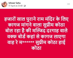 साजा विधायक ईश्वर साहू के नाम से एक फेसबुक अकाउंट से कुछ ऐसा पोस्ट हो गया कि प्रदेश की राजनीति में खलबली मच गई. विधायक साहू के नाम से बने अकाउंट से देश के न्यायपालिका के बारे में असंसदीय टिप्पणी की गई है