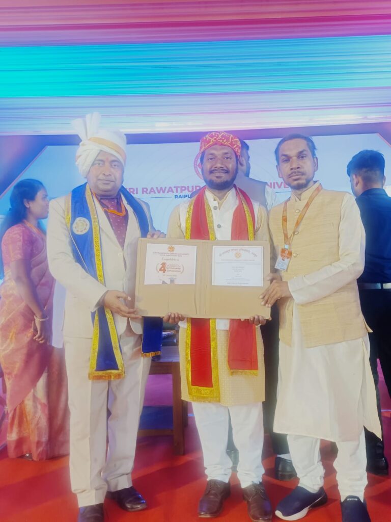 भानुप्रतापपुर । कांकेर जिला के ग्राम हरिदासपुर निवासी दिनेश बाला ने श्री रावतपुरा सरकार विश्वविद्यालय रायपुर से प्रोफेसर डॉ. कप्तान सिंह के मार्गदर्शन में 14 नवंबर 2025 में योग विज्ञान में पीएचडी की उपाधि प्राप्त किया। उनका शोध का विषय “प्राणायाम का सिगरेट सेवन करने वाले व्यक्तियों के स्वास्थ्य एवं व्यसन पर पड़ने वाले प्रभाव का अध्ययन” था। छत्तीसगढ़ प्रदेश के राज्यपाल रमेन डेका ने 30 जनवरी 2026 को दिनेश बाला को डॉक्टर ऑफ फिलासफी की उपाधि से सम्मानित किया। साथ ही साथ श्री रावतपुरा सरकार विश्वविद्यालय के कुलाधिपति अनंतविभूषित परमपूज्य रविशंकर महाराज जी ने आशीर्वाद प्रदान किया।