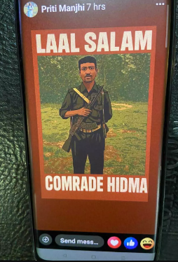 एनकाउंटर में मारे गए कुख्यात नक्सल कमांडर माड़वी हिडमा के समर्थन में पोस्ट करते हुए लिखा—